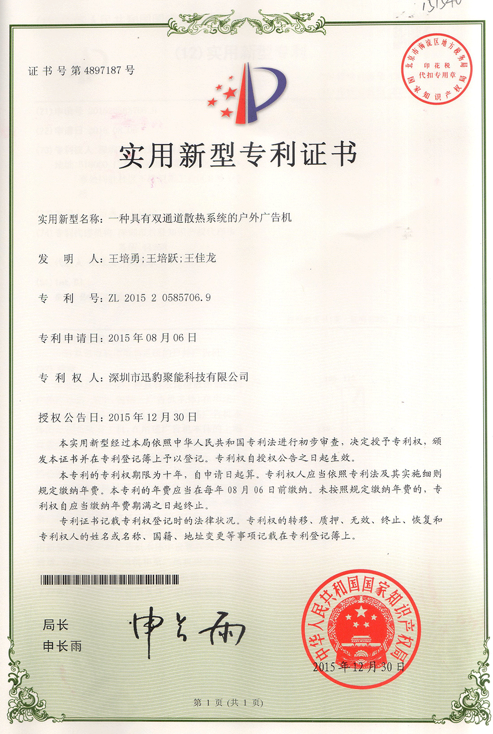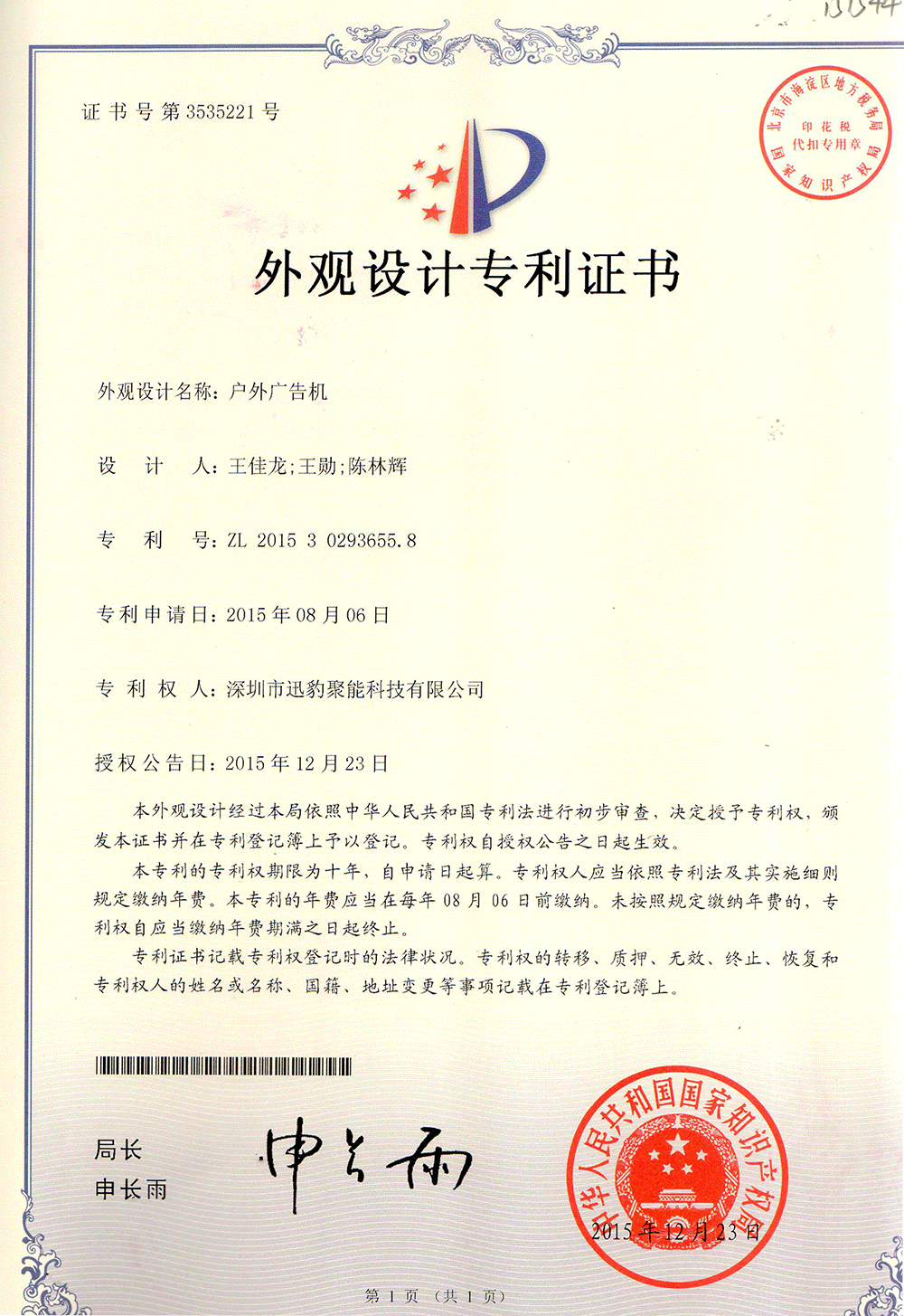 研發(fā)核心由20多名經(jīng)驗(yàn)豐富的工程師組成,涉及結(jié)構(gòu)設(shè)計(jì)、工藝技術(shù),熱技術(shù),電子控制,光學(xué)控制以及軟件開發(fā)等。自2008年三星推出第一款46“ 高亮LCD液晶屏后,核心技術(shù)專家就應(yīng)用三星戶外高清LCD屏及相關(guān)技術(shù),自主開發(fā)了多款戶外廣告機(jī)產(chǎn)品,為國外高端客戶ODM定制開發(fā)了多款戶外廣告機(jī),并在北美歐州中東廣泛應(yīng)用,奠定了戶外液晶廣告機(jī)行業(yè)技術(shù)領(lǐng)先的地位。