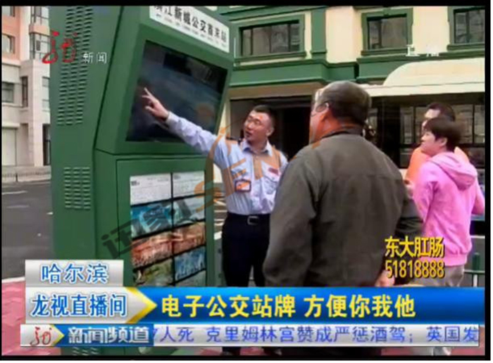迅豹戶外廣告機用于哈爾濱公交電子站牌信息查詢和商家廣告展示(圖)