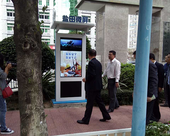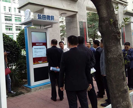 鹽田微屏可通過滑動點擊大屏幕,便于輕松了解到本地政務(wù)和安全等各方面的知識,該款戶外廣告機是采購至深圳迅豹聚能科技有限公司,該套設(shè)備能真正實現(xiàn)便民服務(wù)。