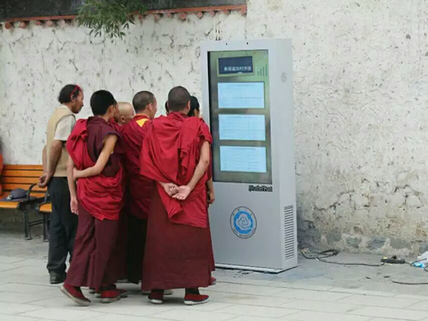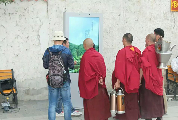 “住進布達拉宮,你是最大的王,走在拉薩的街頭,你是最美的情郎?!北晃鞑啬瞧衿娴牡胤矫宰〉?,不止它的風(fēng)景,還有新一代全戶外觸摸顯示廣告查詢機;迷人的風(fēng)景讓你眼花繚亂不如停下你的腳步,觸摸感受一下你眼里無法識別的景色,為下一站目的地做好查詢充分的準(zhǔn)備。
