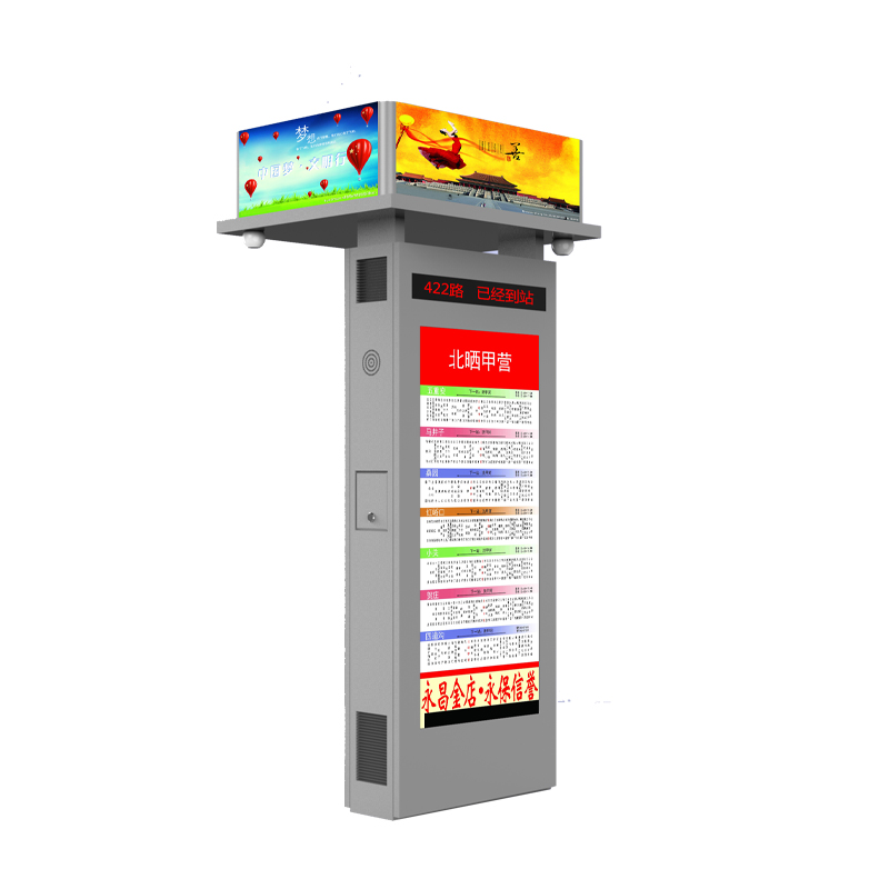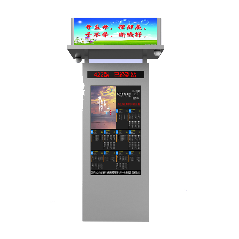 智能公交電子站牌廣告機是結(jié)合智能公交系統(tǒng)和高亮液晶顯示屏組成的產(chǎn)品。其作用是為了方便乘客獲取公交信息,在公交站牌上裝上電子屏幕,可以實時顯示公交車運行狀況,比如還差幾分鐘進站、距離車站還有多遠、車上已有多少位乘客等。